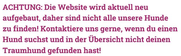 Bitte besuchen Sie diese Seite bald wieder. Vielen Dank für ihr Interesse! Die Seite befindet sich noch im Aufbau und wird noch mit weiteren im Shelter DiNoah lebenden Hunden ergänzt!